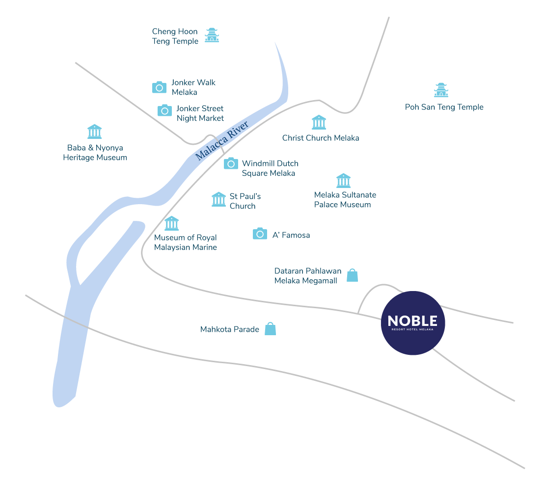 Noble Resort Hotel Melaka lies in the heart of the city center and is within walking distance to major attractions and shopping centres. Its strategic location offers you the opportunity to enjoy the historical and cultural background of this UNESCO world heritage city.