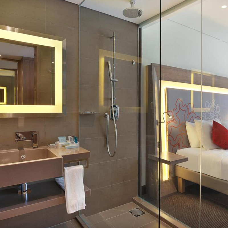 Each room is equipped with contemporary vanity unit, rain shower, big fluffy bath sheets, excellent lighting and a great range of amenities.